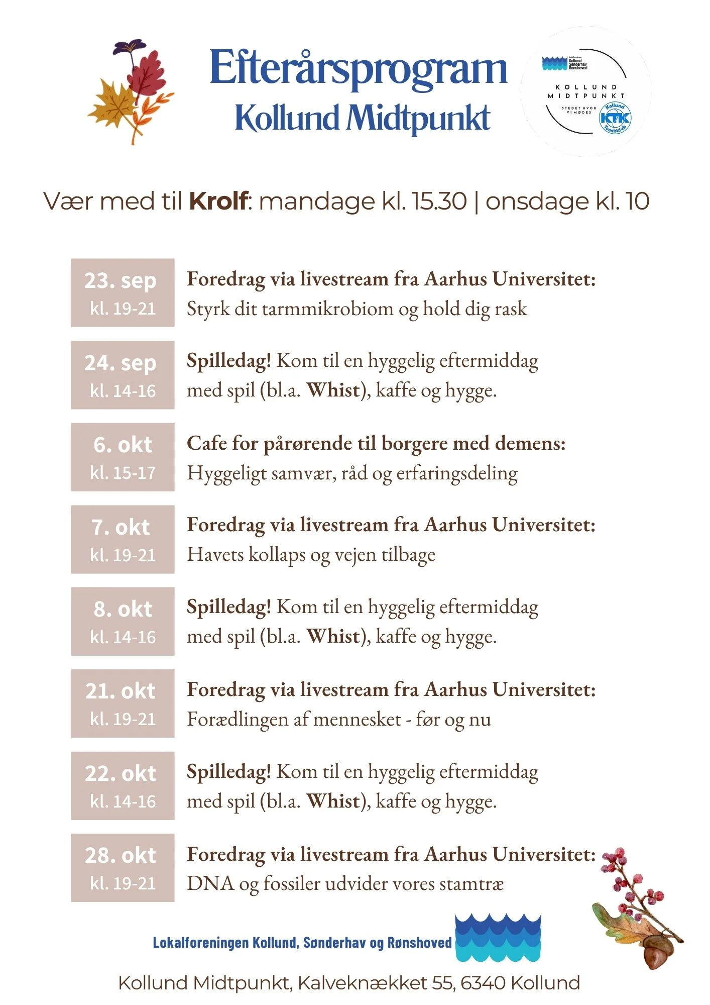 🍁 Efterårsprogrammet i Kollund Midtpunkt er klar! 🍁